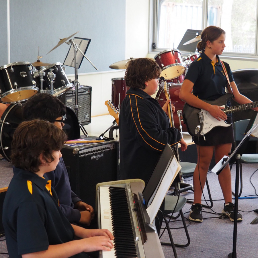 - Grades Four to Six students can elect to have weekly individual Music Lessons. They can learn Bass and Lead Guitar, Trumpet, Trombone, Drums, Keyboard and Singing. They can also hire the school’s instruments.
